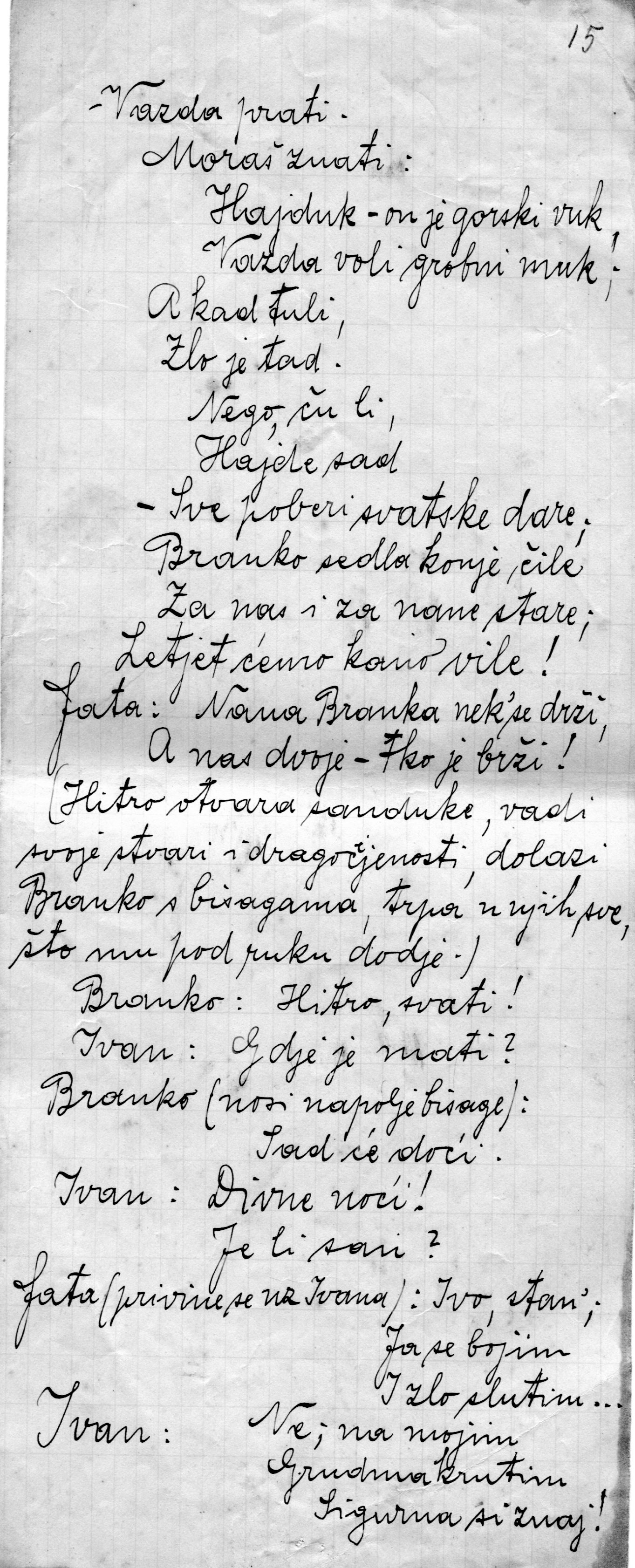 Luka Jukić: Fata, rukopis, završeno u zatvoru 18. listopada 1912. Neobjavljeno i nepoznato.
